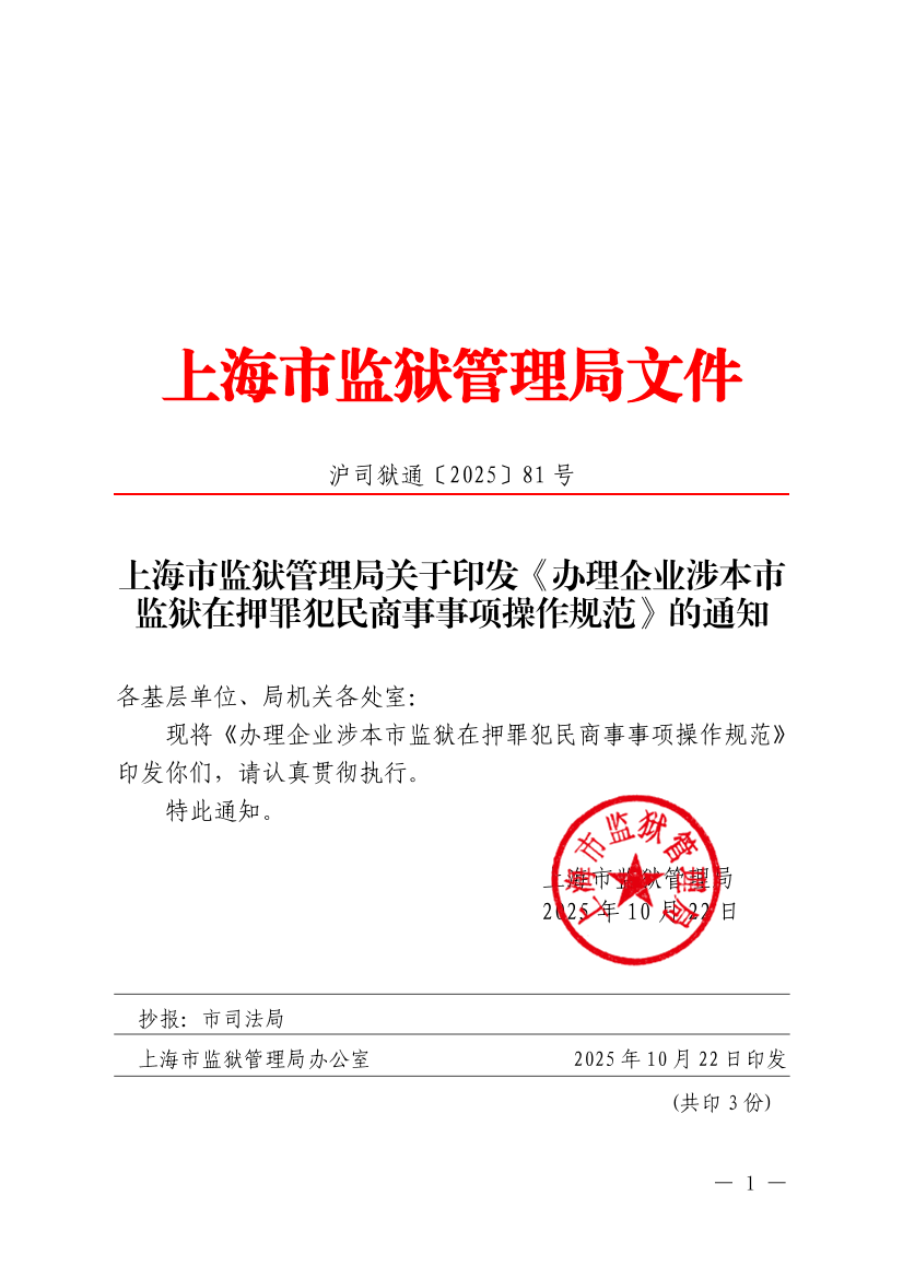 办理企业涉本市监狱在押罪犯民商事事项操作规范